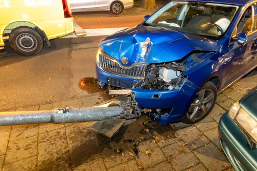 daarna tegen een lantaarnpaal tot stilstand.