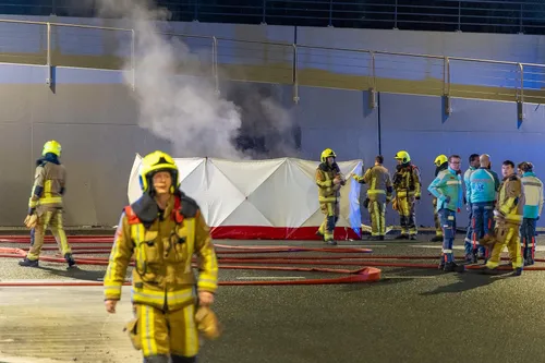 een tunnelwand geereden, waarna het voertuig in brand is gevlogen.