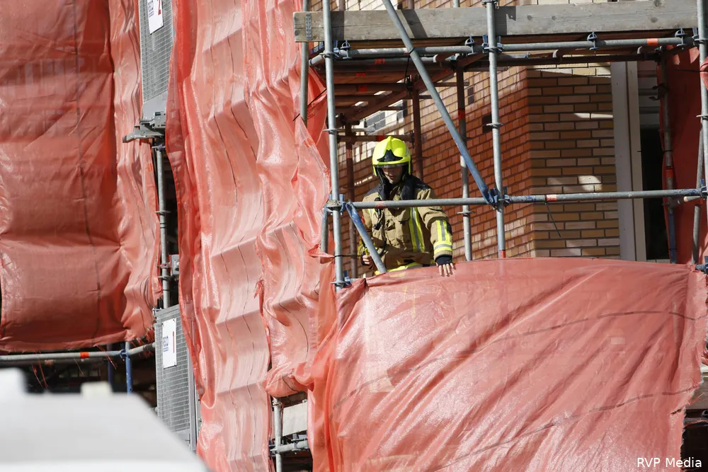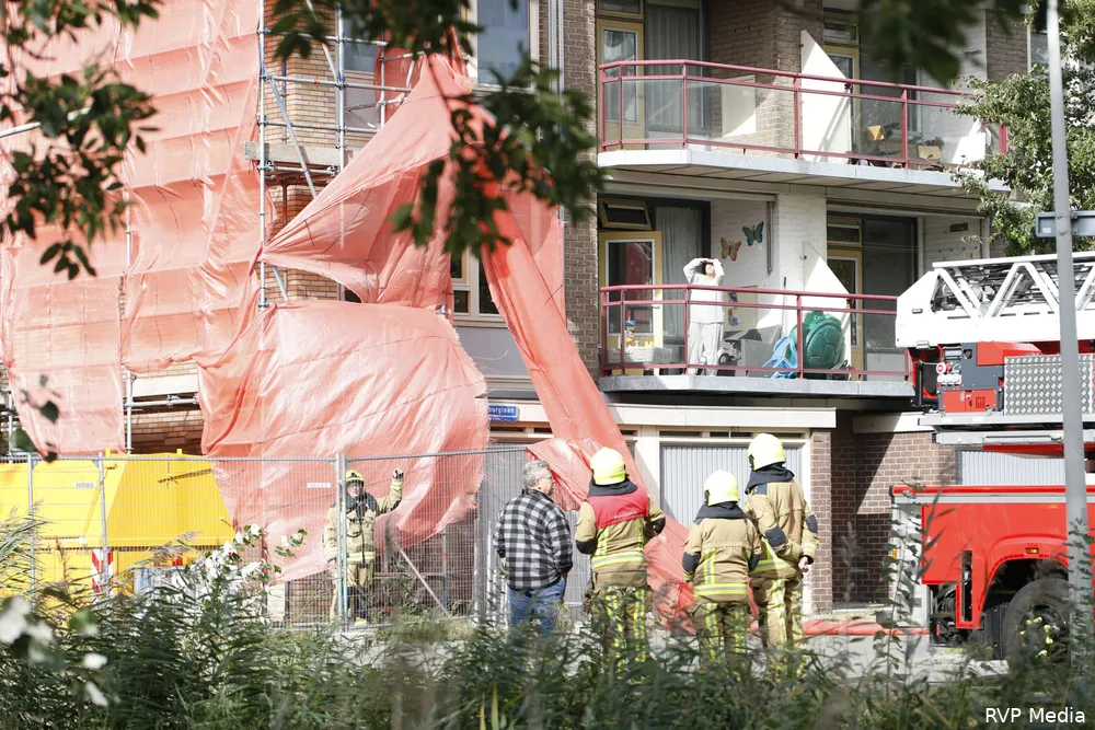 Brandweer grijpt in bij wapperend steigerdoek in Beverwijk