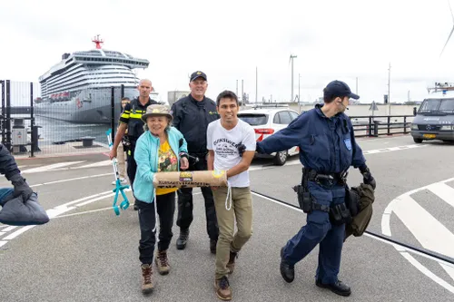 Rond 12.30 uur werden de activisten door de politie weggehaald.