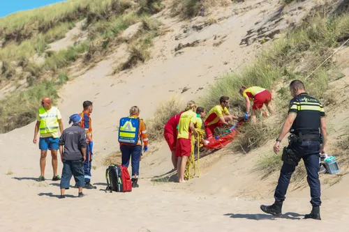 Strand Noorderbad in de duinen bij Wijk aan Zee een ongeluk gebeurd met een