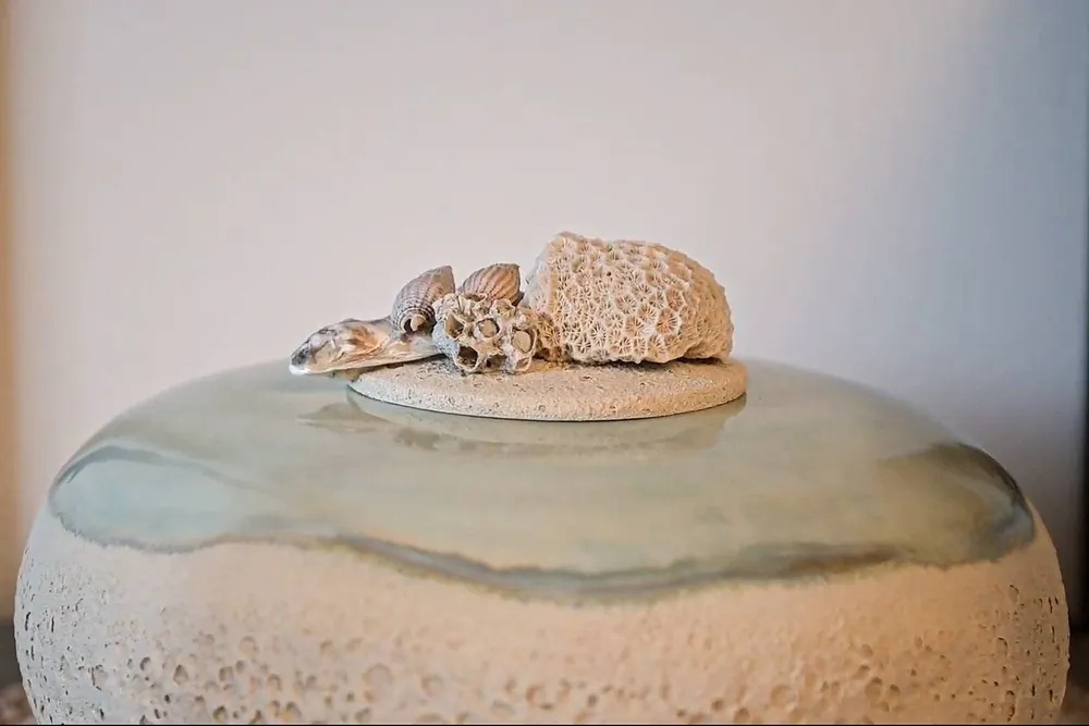 Volgens Cynthia hoeft een urn niet alleen te confronteren met verlies. “De traditionele urn die kent iedereen wel. Als je daarnaar kijkt, dan voel je altijd een beetje weerstand. Bij een urn die ik maak zul je dat gevoel niet zo gauw hebben. Die moet iets zijn waar men naar kijkt zonder alleen de dood te zien. Iets was nabestaanden helpt om met een warm gevoel aan hun dierbare terug te denken.