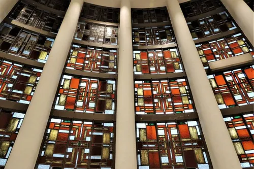 Halfrond trappenhuis met vide en glas-in-loodramen