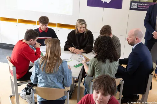 Koningin Máxima bij geldlessen in Coornhert Lyceum in kader van Week van het geld 2025