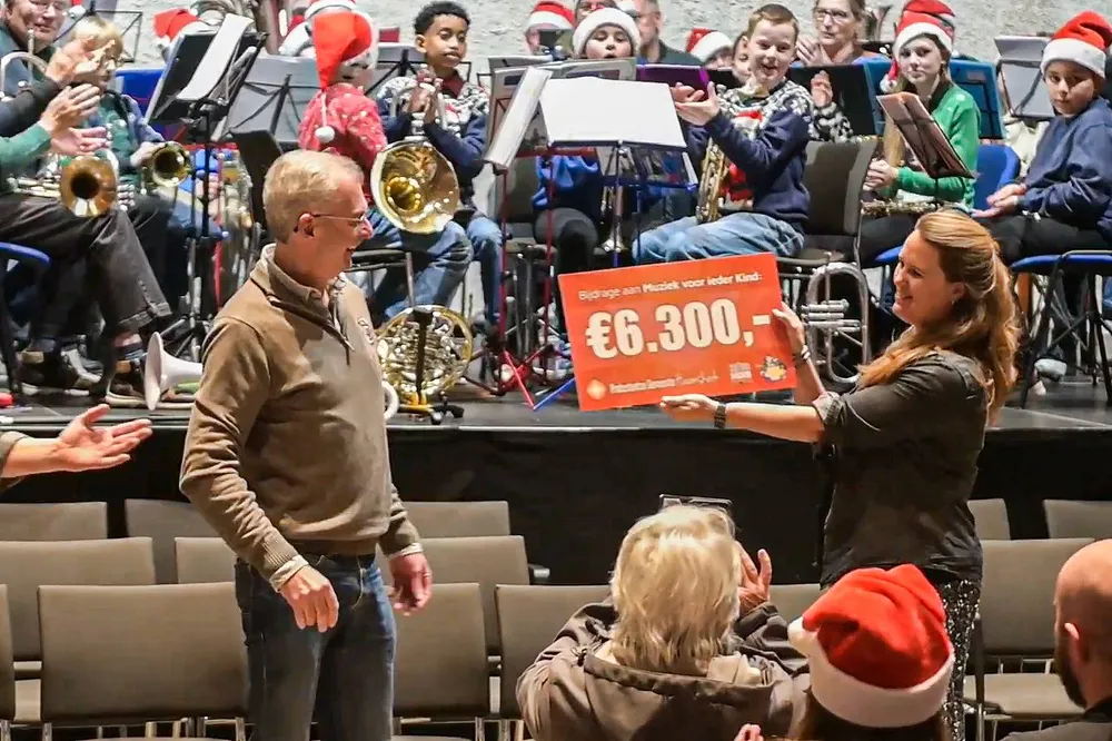 Tijdens het concert overhandigde de Protestantse Gemeente Heemskerk een cheque van € 6.300,- aan het Cultuurhuis Heemskerk. Het bedrag, opgehaald met een benefietbazaar, is bestemd voor de aanschaf van nieuwe instrumenten. Daarmee kan het succesvolle project Muziek voor ieder Kind verder groeien en kunnen nog meer kinderen kennismaken met samen muziek maken.