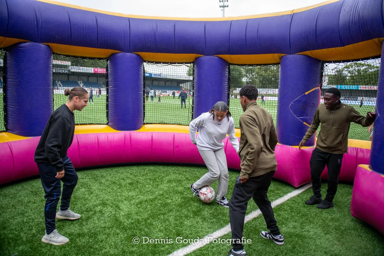 Dit gebeurde in de vorm van oefenwedstrijden voor beide teams en allerlei leuke activiteiten voor de jeugd, die ook dit jaar weer massaal aanwezig was om hun lokale voetbalhelden van dichtbij in actie te zien en om natuurlijk ook de nodige handtekeningen te scoren en selfies te maken met de Telstarspelers en -speelsters.