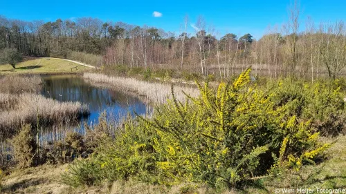 Maar ook in de minder ‘aangelegde natuur’, zoals bossen, duinen en heide lacht de lente je uitbundig tegemoet. Denken we aan de bloei op de heide, dan denken we meteen aan de maanden juli en augustus wanneer de heidevelden paar kleuren. Maar ook nu is er volop bloei op de heide. Niet paars, maar veel geel en wit.