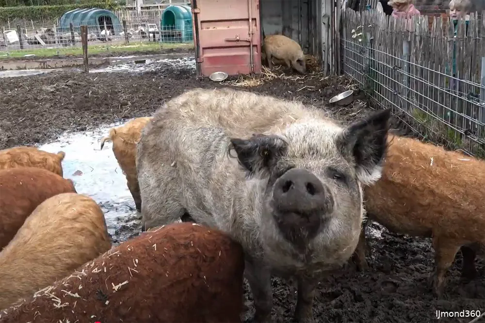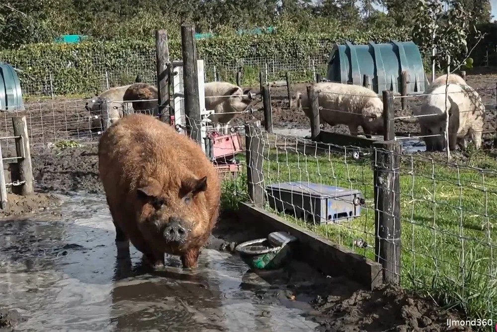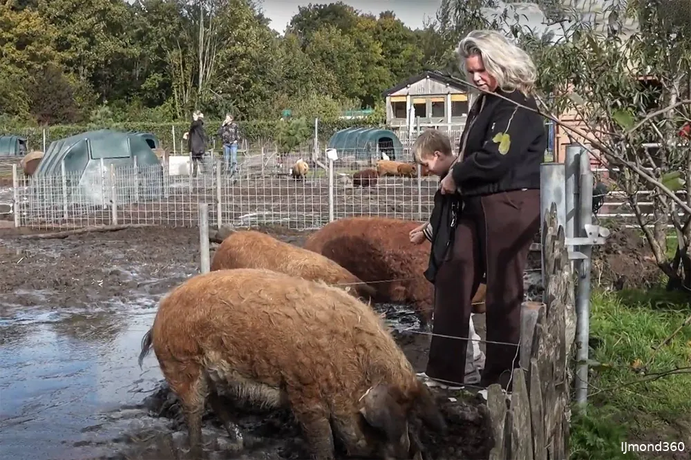 Centraal stonden de Hongaarse wolvarkens, ook wel mangalica’s genoemd. “Ze vinden het heerlijk om door de modder te ploeteren,” vertelt een van de vrijwilligers terwijl de varkens tevreden knorren. “De dieren leven hier met veel ruimte en natuurlijke voeding: groenterestjes, eikeltjes, wormpjes maar geen vlees. Alles zoveel mogelijk biologisch.