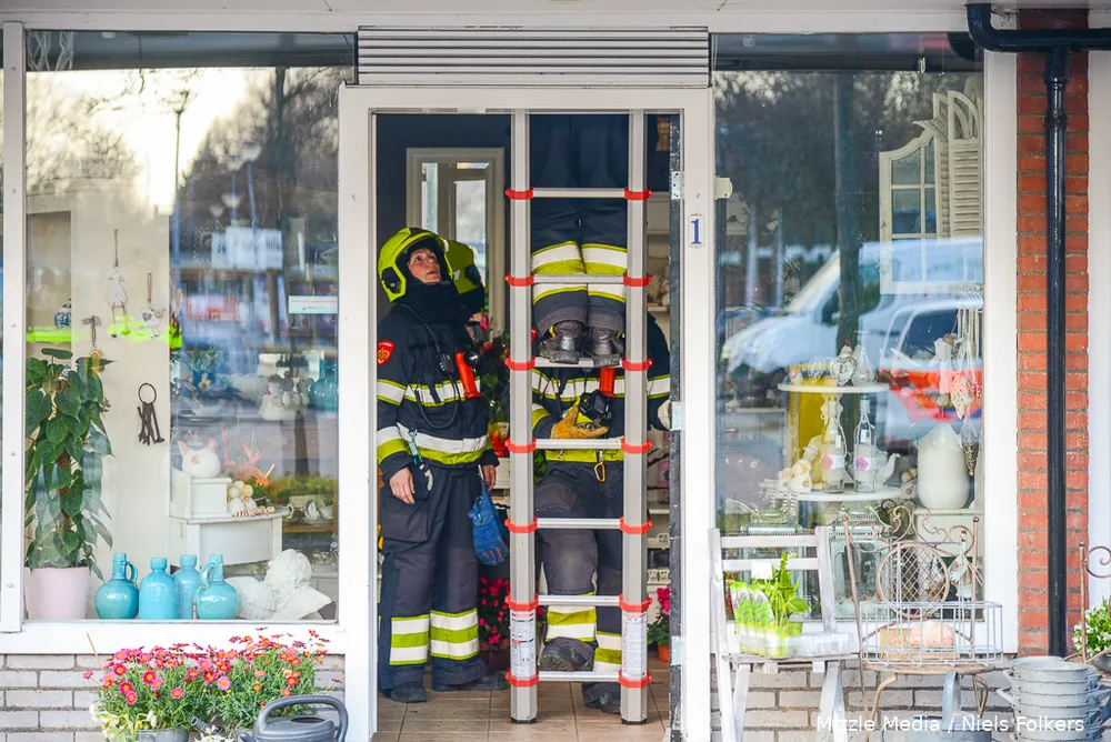 De brandweer heeft de winkel geventileerd en een onderzoek ingesteld het bleek om een brand te gaan in de ventilator van de verwarmingsketel.