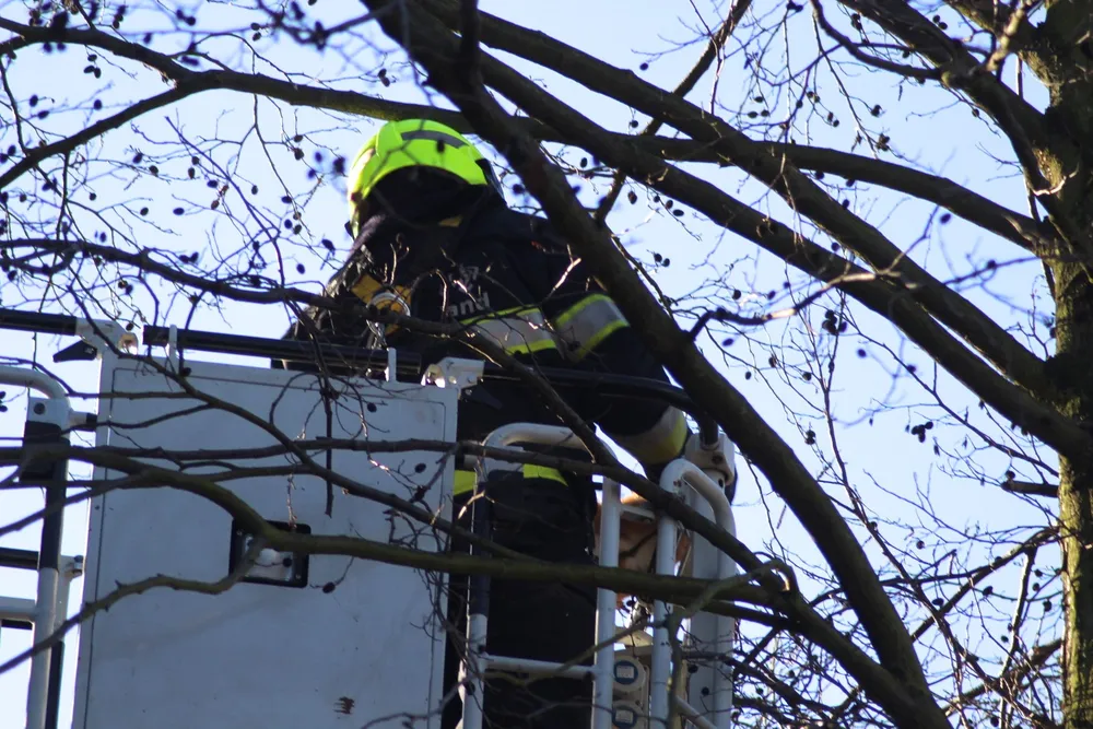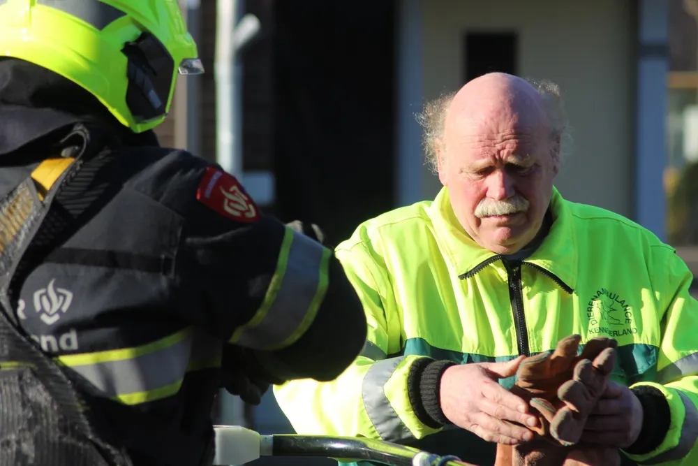 Een buurtbewoner maakte dinsdagmiddag rond drie uur melding van een kat die na een 'akkefietje' met een hond de boom was ingevlucht. De Dierenambulance Kennermerland keek de kat niet uit de boom, en heeft kort na aankomst de assistentie ingeschakeld van de brandweer.