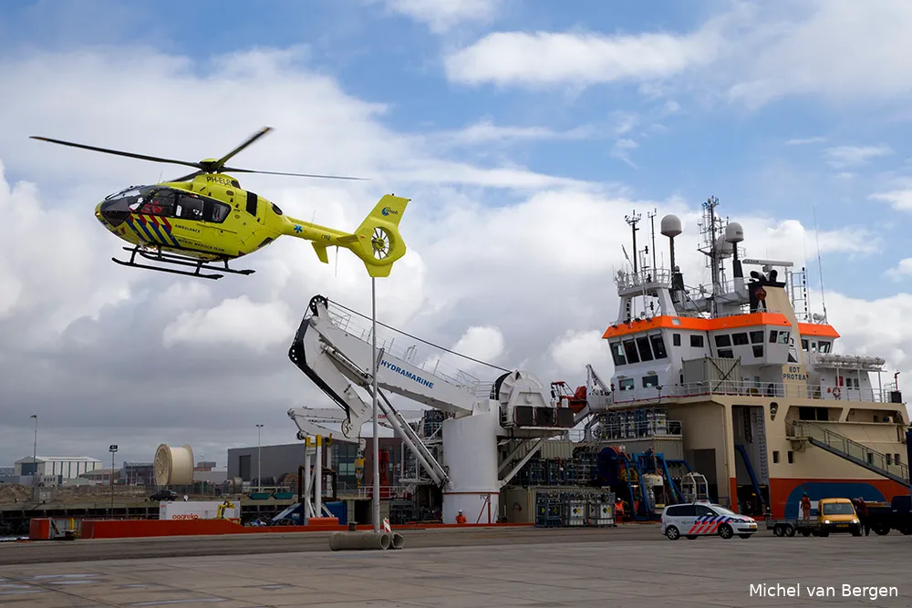 Gezien de ernst van het letsel werd naast diverse ambulances ook het traumateam uit Amsterdam opgeroepen om assistentie te verlenen. Het slachtoffer is na de eerste zorg met spoed naar het ziekenhuis overgebracht voor verdere behandeling. De traumahelikopter landde op de Volendamkade.