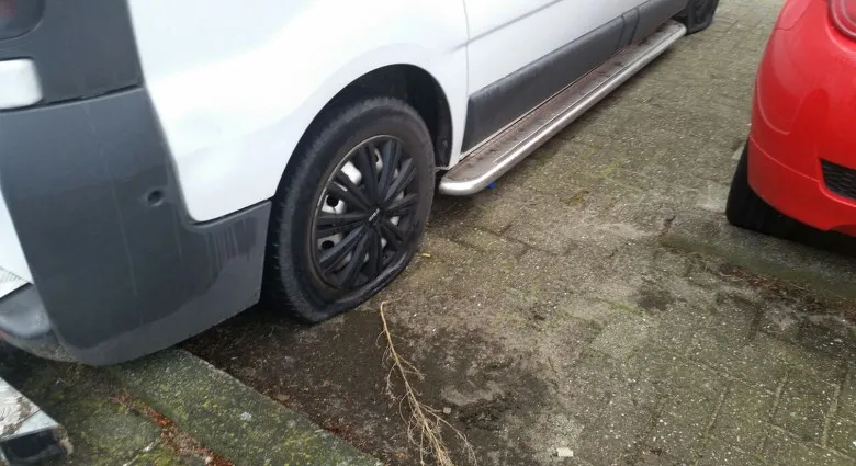BEVERWIJK - Om kwart over vijf vanochtend reed Dennis Mijnders niets vermoedend over de autosnelweg naar zijn werk. Plotseling begon zijn bedrijfswagen te slingeren en moest hij noodgedwongen op de vluchtstrook parkeren. Wat bleek, alle vier zijn autobanden waren lek geprikt.