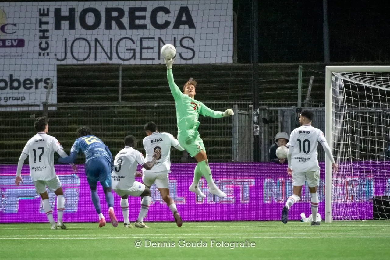 Al na 21 minuten stond de rood-witte brigade (dit keer in het lichtblauw) van Frank Peereboom met 1-0 achter nadat Zakaria Eddahchouri een hoekschop bij de tweede paal in het doel kopte, achter doelman Paul Reverson.