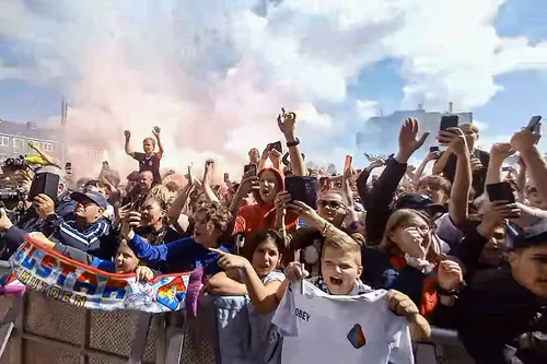 Vanaf half vier liep het plein vol met feestende fans veelal