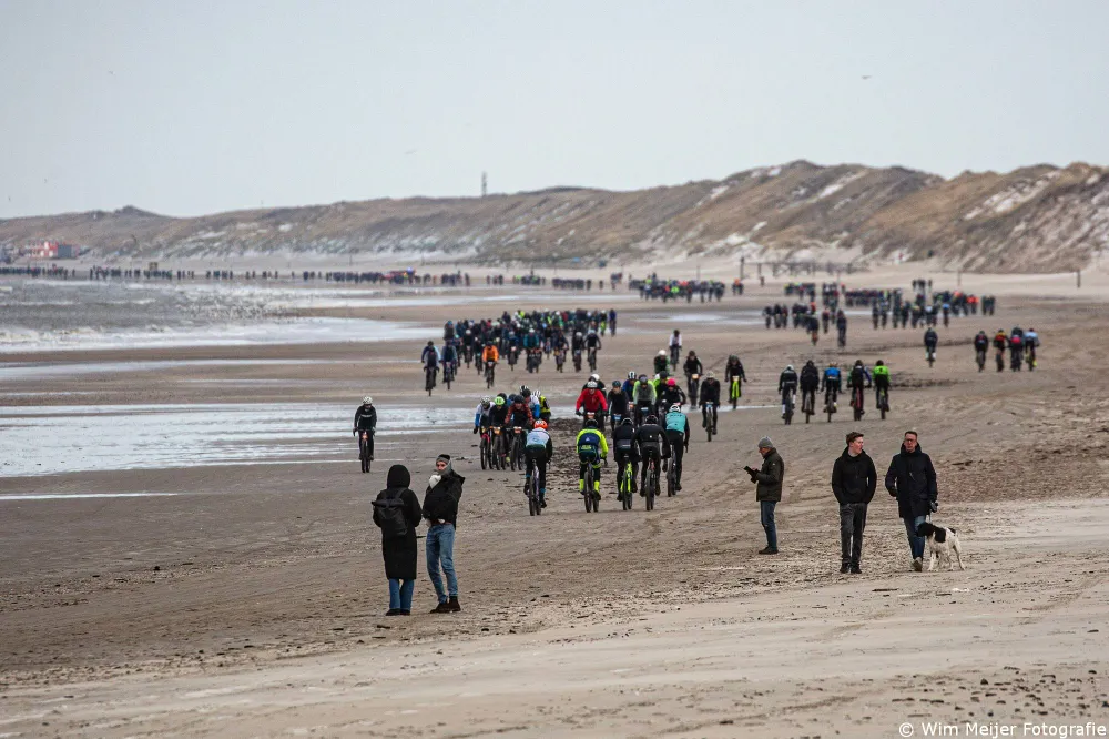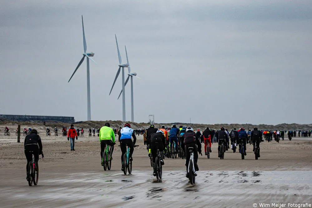 Behalve de enkele honderden wedstrijdrenners deden aan de jubileumeditie van de Egmond-Pier-Egmond ruim drieduizend recreanten mee. Was het voor de toprenners vandaag al flink afzien, voor de recreanten geldt dat misschien nog wel meer. Ervan uitgaande dat de recreanten langer onderweg zijn dan de wedstrijdrenners, moeten ze ook gedurende langere tijd de koude overwinnen. En koud was ‘t! Misschien dat op papier die min drie graden nog wel meevielen, maar zeker op de terugweg hadden de renners de snijdende noordwestenwind schuin tegen. Het enige voordeel voor de recreanten was dat, naarmate de tijd verstreek, het strand door eb steeds beter berijdbaar werd. Hoe dan ook, hoe koud en hoe zwaar het ook was, bij de passage in Wijk aan Zee leken alle gezichten van de deelnemers nog redelijk op ‘blij’ te staan.