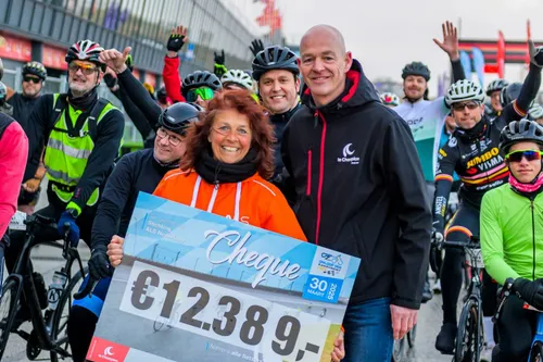 over 40, 80, of 120 km. Voor de start werd een cheque van € 12.389,- uitgereikt