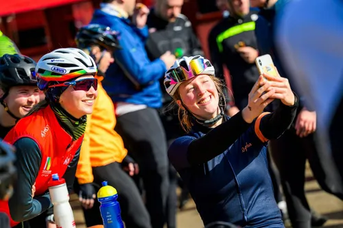aan de startstreep. Naast Nederlandse deelnemers stonden ook fietsers uit